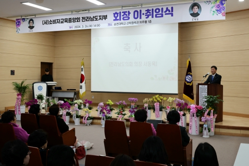 [뉴스서울] 전라남도의회 서동욱 의장은 3월 26일 순천대학교 산학협력관에서 열린 소비자교육중앙회 전남지부 회장 이·취임식에 참석했다.