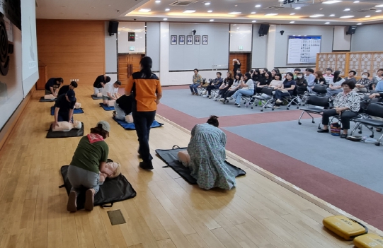 주요 내용은 심폐소생술 교육 및 AED 사용법, 소화기·소화전 사용법, 긴급상황 대피 교육 등이다.