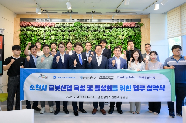 [뉴스서울] 순천시는 7월 31일 순천정원지원센터에서 순천시 로봇산업 본격 육성을 위해 로봇기업들과 업무 협약식을 개최했다.
