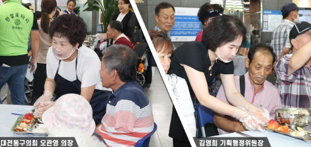 이날 행사에는 대전 동구의회 오관영 의장과 김영희 기획행정위원장도 참석해, 급식 봉사를 하며 주민들과 소통하고 관계자들을 격려하는 시간을 가졌다.