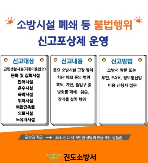 ▲ 진도소방서, 소방시설 불법행위 신고포상제 운영 |