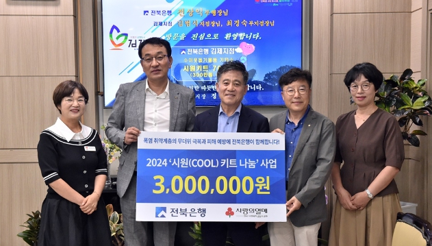 정성주 김제시장은 “지역민들을 위해 매년 뜻깊은 나눔을 펼쳐 주시는 전북은행에 진심으로 감사드리며, 취약계층이 건강하고 안전하게 여름을 날 수 있도록 더욱 세심하게 살피겠다.”고 전했다.