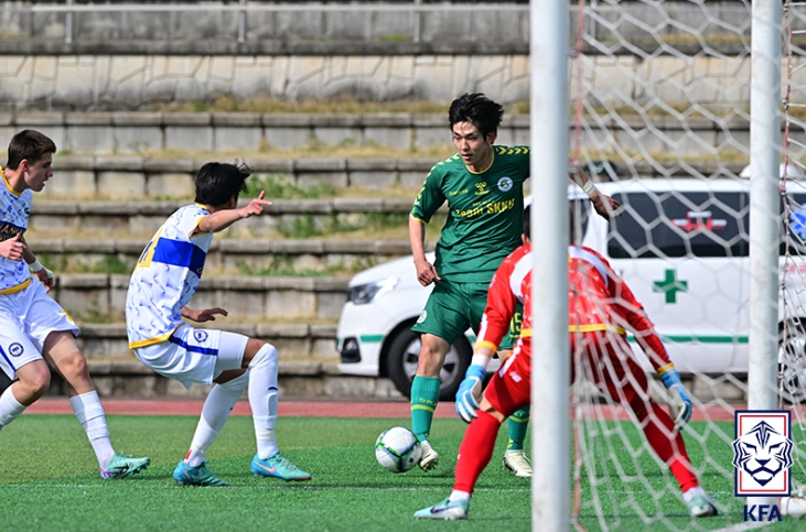 후반전에도 성균관대의 골 레이스는 멈추지 않았다. 후반 17분 하프라인을 조금 넘어선 지점에서 볼을 잡은 이동현은 과감하게 페널티 아크까지 직접 돌파했고, 골대 먼 쪽을 향해 강력한 왼발 슈팅으로 격차를 벌렸다. 이어 후반 40분에는 박시우의 침투 패스를 받은 송창훈이 1대1 찬스에서 침착한 왼발 마무리로 네 번째 골을 기록했다.