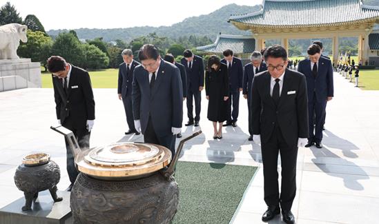[뉴스서울] 부산광역시의회는 8월 14일 오전 9시, 대한민국시도의회의장협의회 안성민 회장을 비롯하여 전국 시도의회의장들이 국립대전현충원을 방문하여 호국선열과 호국영령의 숭고한 넋을 기리며 분향과 참배를 시작으로 첫 공식일정을 수행했다고 밝혔다.