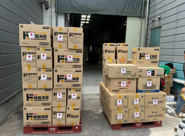 ▲ ㈜해송식품이 나주시에 1000만원 상당의 김 274박스를 기탁했다. |