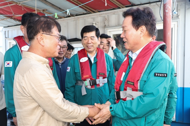 [뉴스서울] 박완수 경남도지사는 31일 통영시 해상가두리 양식장과 적조방제장비 보관센터를 방문해 고수온․적조 대응 상황을 점검했다.