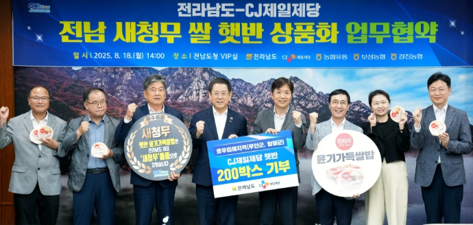 [뉴스서울] 전라남도와 CJ제일제당, 농협유통, 보성·강진통합RPC는 18일 전남도청에서 새청무 쌀 활용 햇반 출시를 통해 안정적 원료곡 공급부터 소비 활성화까지 협력하는 업무협약을 했다.