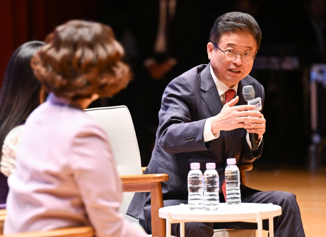 기념식 후 이어진 이철우 도지사와 함께하는 토크콘서트 ‘뜻밖의 위안’에서는 온라인과 현장에서 접수된 청년들의 가치관과 고민을 듣고 공감하면서, 도지사의 인생 경험을 바탕으로 한 격려와 응원으로 청년들에게 많은 위안을 주는 시간을 가졌다.