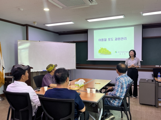 [뉴스서울] 청도군는 8월 2일 관내 포도 재배 농가를 대상으로 ‘현장 농업경영컨설팅’을 진행했다. 이번 컨설팅은 여름철 포도 과원관리에 초점을 맞춰 오전 이론 교육, 오후 개인별 농장 현장에서 맞춤형 컨설팅으로 이루어졌다.