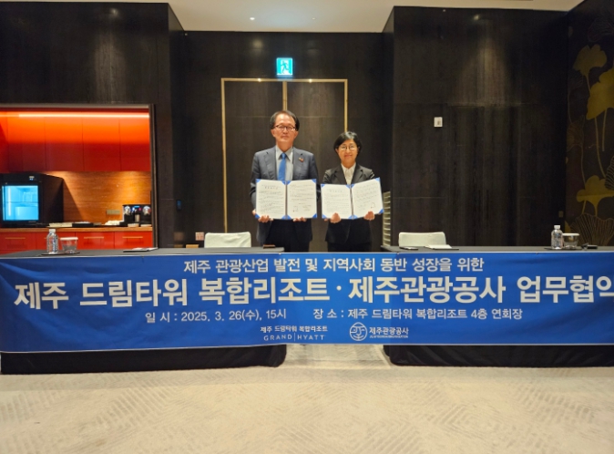 [뉴스서울] 제주관광공사는 26일 제주 드림타워 복합리조트에서 제주 드림타워(대표이사 회장 김기병)와 제주 관광산업 발전과 지역사회 공헌을 위한 업무협약(MOU)을 체결했다.