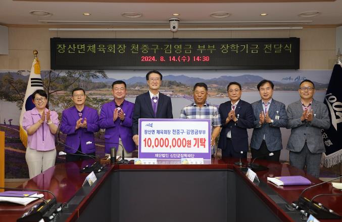천중구 씨는 “현재 아들 내외와 손자녀까지 3대가 장산면에서 생활하고 있는데 섬에서 자라고 있는 손자녀를 보면서 향후 섬에서의 교육이 더 힘들어질 것 같다고 생각하게 되었다.”라며 “후손들이 섬에서도 걱정 없이 교육받을 수 있는 여건이 되었으면 하는 마음에 장학금 기탁을 결정하게 됐다.”라고 소감을 전했다.