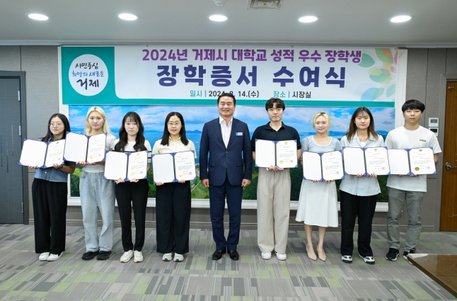 거제시 출신의 대학생 중 성적이 우수한 학생들이 장학생으로 선발되어, 장학증서를 수여 받았다. 대학교 성적 우수 장학생으로 선발된 총 71명의 장학생에게 1인당 150만원씩 총 1억여 원의 장학금을 지급한다.