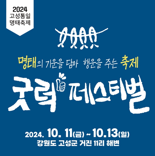 [뉴스서울] 고성군의 대표축제 고성통일명태축제가 새로운 모습으로 돌아온다. 올해로 24회를 맞이한 이번 축제는 ‘명태의 기운을 담아 행운을 주는 축제 – 굿럭 페스티벌’ 이라는 새로운 주제로 관광객들을 맞이할 준비를 하고 있다. 이번 축제는 영동권의 쌀쌀해지는 10월 말 날씨를 고려해 개최 일정을 2주 앞으로 앞당겨 오는 10월 11일 금요일부터 3일간 거진 11리 해변에서 개최한다.