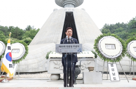 또한 박 도지사는 추념사에서 “오늘날 330만 경남도민의 일상적인 삶은 여기 잠들어 계신 호국영령 한 분 한 분의 희생과 헌신 덕분이다. 현충일 오늘 하루만큼은 이들 모두를 영웅으로 예우하고 아픈 역사를 되풀이하지 않길 다짐하는 시간이 되기를 바란다”고 말했다.