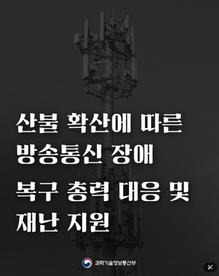과기정통부는 특별재난지역으로 선포된 울산광역시 울주군, 경상북도 의성군, 경상남도 산청군, 하동군에 대해 정보통신분야 지원 대책을 시행합니다.