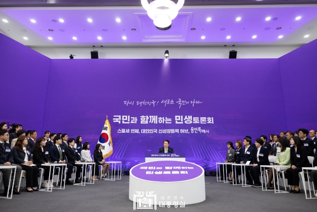 ▲ 3월 25일 윤석열 대통령은 경기도 용인특례시청에서 ‘대한민국 신성장동력 허브 용인특례시’를 주제로 스물세 번째 「국민과 함께하는 민생토론회」를 개최했다. |