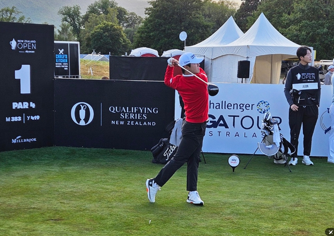 한국시간으로 27일(목) 뉴질랜드 퀸즈타운 소재 밀브룩 리조트 코로넷코스(파71. 6,936야드)와 리마커블스코스(파71. 6,784야드)에서 펼쳐지고 있는 ‘제104회 뉴질랜드 오픈’ 첫 날 고군택은 코로넷코스에서 출발해 보기 1개를 범했지만 버디 6개, 이글 1개를 엮어 7언더파 64타로 1라운드를 마쳤다.