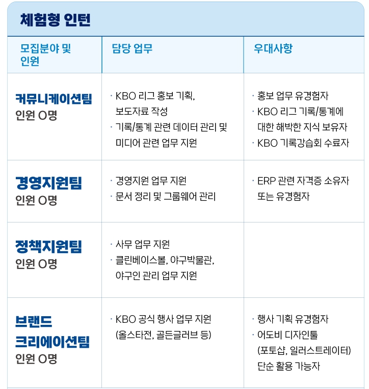 ▲ 2025 KBO 체험형 인턴사원 채용 |