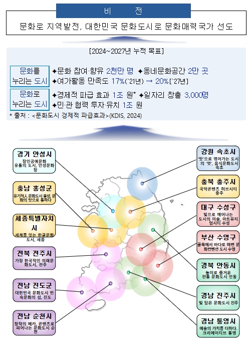 3년간 ‘대한민국 문화도시’ 육성, 경제적 파급효과 약 1조 원, 3천 명의 일자리 창출 달성 기대