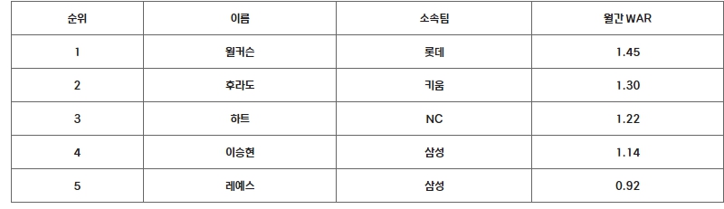 ▲ 6월 쉘힐릭스플레이어(WAR) 투수 최종 순위 |