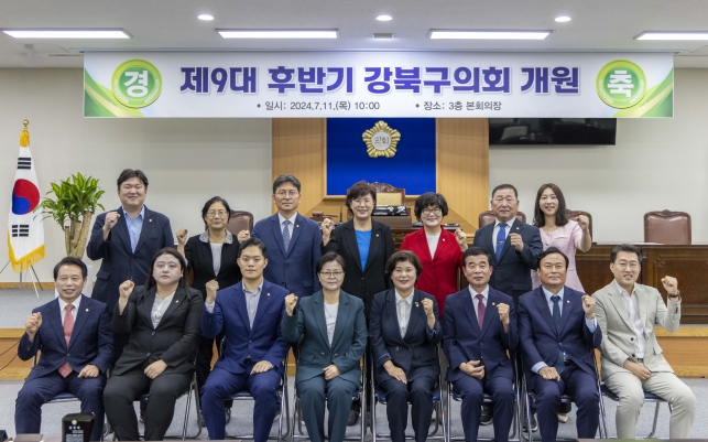 [뉴스서울] 강북구의회는 지난 11일 본회의장에서 김명희 신임 의장을 비롯한 구의원 14명 전원과 이순희 강북구청장 등 집행부 관계자들이 참석한 가운데 ‘제9대 강북구의회 후반기 개원식’을 갖고 힘찬 출발을 알렸다.