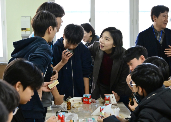 이번 방문은 급식이 중단돼 대체식이 제공되는 학교 현장을 살피고 매년 반복되고 있는 학교 급식 종사자 파업 문제에 대한 개선책을 모색하기 위해 마련됐다. 이날 현장엔 박상혁 교육위원회 위원장이 함께 참석했다.