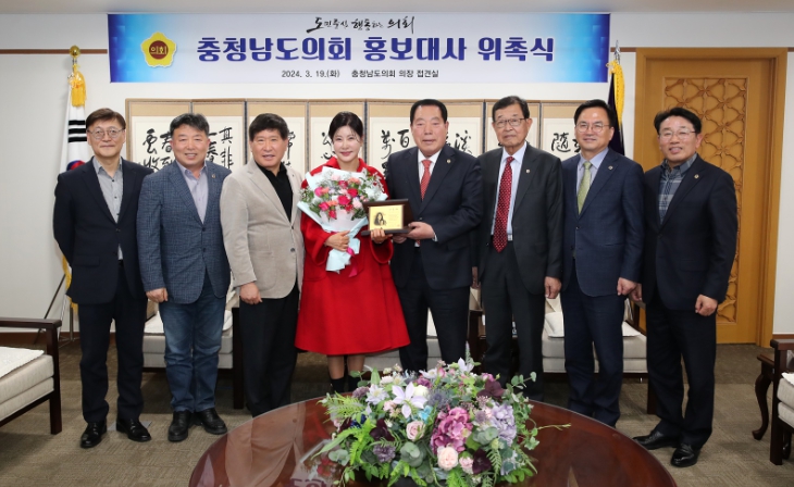 충남도의회는 19일 의장단과 상임위원장단, 운영위원장과 예산결산‧윤리특별위원장, 의회사무처 간부 공무원 등이 참석한 가운데 홍보대사 위촉식을 개최했다.