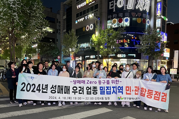 [뉴스서울] 대구 동구청은 지난 18일 신천4동 동대구복합환승센터 건너 일대에 밀집한 유흥주점, 단란주점, 노래연습장, 숙박업소 등 성매매 우려 업소 125개소를 대상으로 민·관 합동 야간점검을 실시했다.