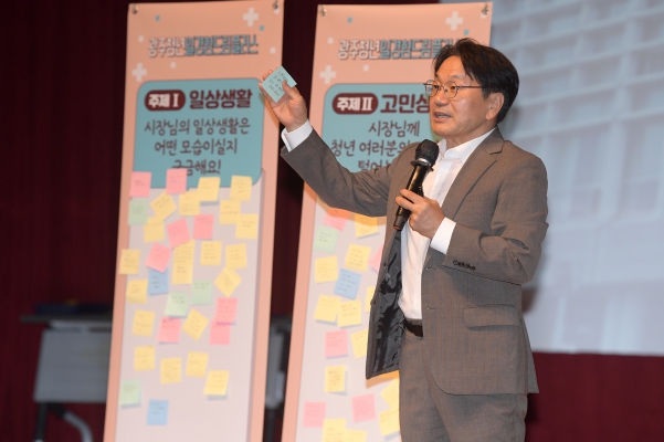 강 시장은 강연 시작 전 미리 받은 질문에 대한 답변과 함께 광주시 청년정책, 인공지능(AI)사관학교 등 인재양성 프로그램, 광주형 청년일자리공제 사업 등을 소개하며 청년들의 궁금증을 해결했다.