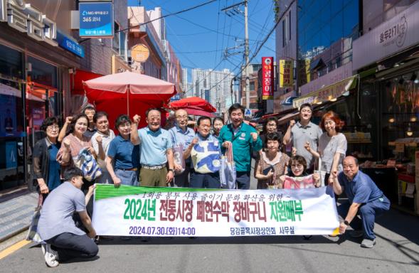 [뉴스서울] 부산진구는 지난 30일, 폐현수막을 재활용하여 만든 장바구니 2,000개를 당감새시장 및 당감골목시장 상인회에 전달했다.