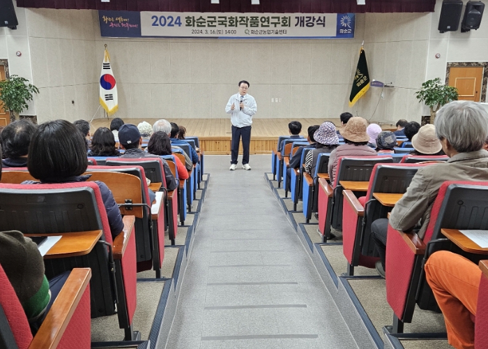 [뉴스서울] 화순군은 3월 16일 화순군국화작품연구회 회원 65명이 참석한 가운데 농업기술센터에서 국화재배 교육 개강식을 성황리 개최했다고 밝혔다.