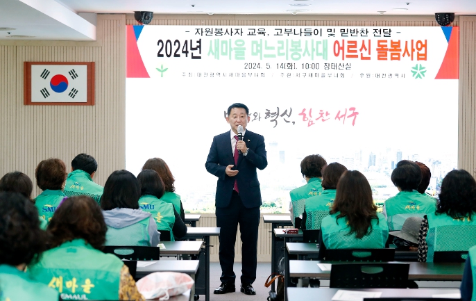 [뉴스서울] 대전 서구는 14일 구청 장태산실에서 새마을며느리봉사대 72명이 참석한 가운데 어르신 돌봄 봉사단 교육을 실시했다.