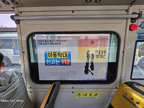 중구는 울산 지역 11개 노선을 운행하는 시내버스 35대를 선정해, 내부에 아동학대 예방 광고물을 부착했다.