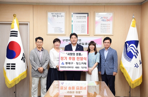 장준용 동래구청장은 “이웃을 위해 늘 봉사와 나눔을 실천하고 계신 분들을 늘 존경하고 감사한다”며 “꾸준히 기부하는 것은 쉽지 않은 일인데도 몸소 이웃을 위해 나눔을 실천하고 계신 장하숙 대표님께 감사드린다”고 전했다.