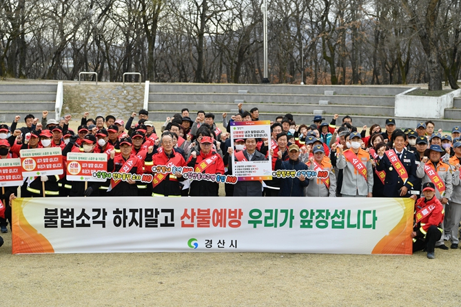 [뉴스서울] 조현일 경산시장은 19일 자인 계정숲에서 자인면 의용소방대, 마을 이장, 관련 유관기관 등 60여 명과 함께 ‘불법소각 ZERO 산불 ZERO 합동캠페인’에 참여하고 봄철 산불 예방에 총력을 다하고 있다.