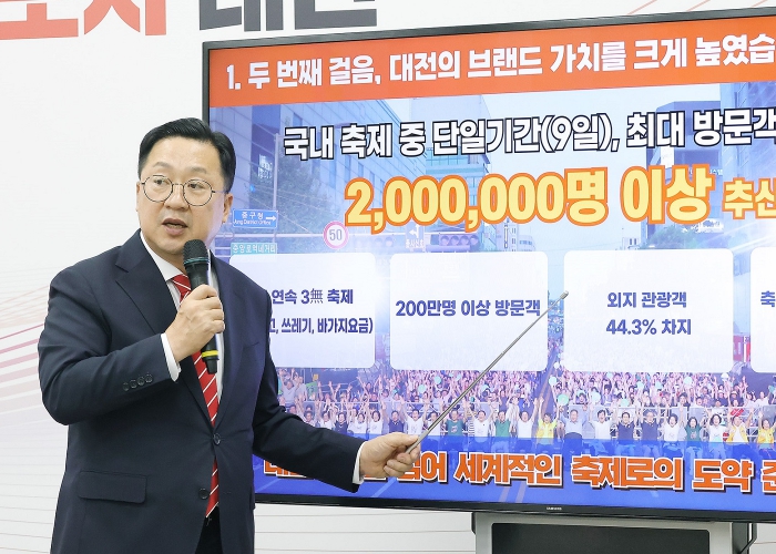 이 시장은 “더 재미있고 매력적인 축제를 위해 지난 1년 동안 최선을 다했지만, 지나고 보면 부족하고 모자란 점도 보이는 것이 사실”이라며, “그럼에도 이만큼의 성과를 낸 것은, 대전 0시 축제가 이제는 대한민국을 넘어 세계적인 축제로 도약할 수 있는 발판을 확보하게 됐다는 것을 세상에 알린 것”이라고 말했다.