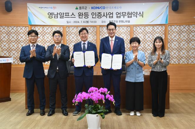 [뉴스서울] 울산시 울주군과 한국조폐공사가 8일 군청 은행나무홀에서 이순걸 울주군수와 성창훈 한국조폐공사 사장, 배수현 MINT 사업처장 등이 참석한 가운데 영남알프스 완등 인증사업의 원활한 추진을 위한 업무협약을 체결했다.