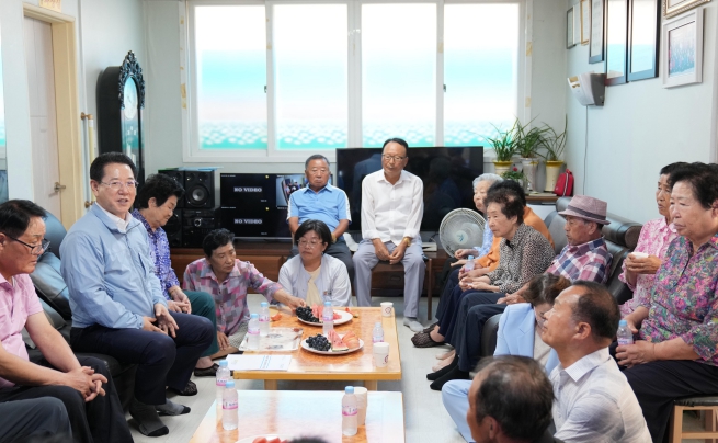 김영록 지사는 이날 영광군 운송정경로당을 방문해 시설 등 운영 현황을 점검하고, 폭염을 피해 경로당을 이용하는 어르신의 안부를 직접 살피며 애로사항을 청취했다.