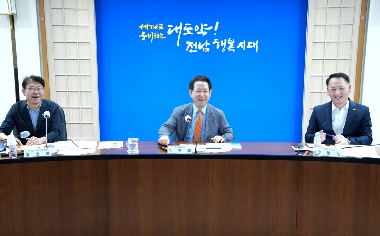 | ▲ 김영록 전라남도지사가 28일 도청 정약용실에서 ‘2025 명량대첩축제 추진상황 보고회’를 주재하고 있다. |