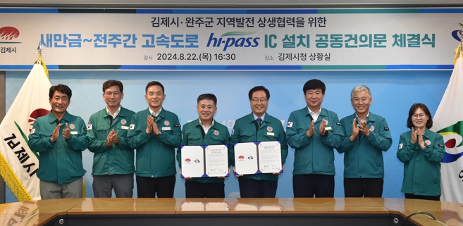 [뉴스서울] 김제시와 완주군이 지역발전 상생협력 사업으로 새만금~전주간 고속도로 용지면과 완주군 이서면 경계에 하이패스 IC 설치를 위해 손을 맞잡았다.
