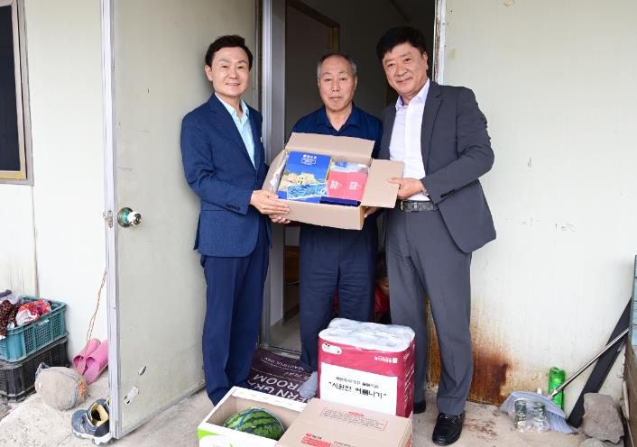 당일, 이남철 군수는 김종태 위원장과 함께 폭염취약 대상 가구를 직접 방문하여 물품을 전달하고 폭염에 대비한 생활상의 어려움 등을 청취하고 위로하였다.