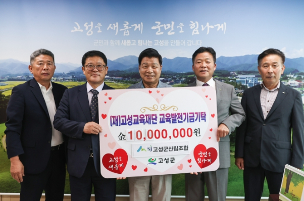 고성군산림조합은 9일 고성군청을 방문해 고성군 지역인재 양성을 위해 써달라며 교육발전기금 1천만 원을 (재)고성교육재단에 기탁했다.