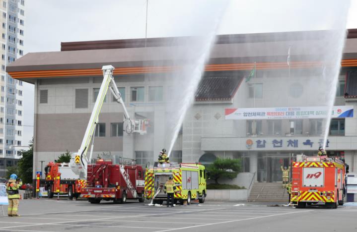 이번 실제훈련은 군민들이 평소 많이 이용하는 시설인 합천체육관에 테러범이 폭발물을 설치하여 건물이 파괴되고 사상자가 발생하는 등 민심이 극도로 동요되고 있는 상황을 가정하여 진행되었다.