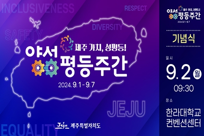[뉴스서울] 제주특별자치도는 9월 1일부터 7일까지 2024년 양성평등주간을 맞아 ‘제주 가치, 성평등!’이라는 주제어(슬로건)를 내걸고 도 전역에서 다양한 행사를 진행한다.