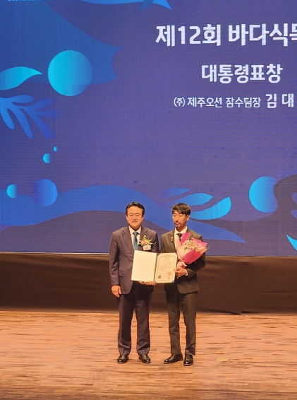 해양수산부는 수산자원 조성 및 관리 발전에 이바지한 제주지역 수상자로, 대통령 표창에 오상필 제주도 수산정책과장, 김대종 ㈜제주오션 잠수팀장, 국무총리 표창에 강정찬 제주대학교 기초과학연구소 특별연구원(국무총리 표창)을 선정했다.