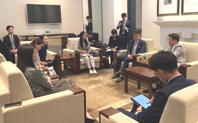 설명회 후 현지 취재진 요청으로 이뤄진 오영훈 지사와의 기자간담회에서 기자들은 제주-선전 복항의 의미, 관광 분야 외 방문 목적, 제주와 선전의 잠재적 협력 분야 등을 묻는 질문과 함께 중국 젊은층이 선호하는 제주 사설 관광업체의 인형을 온라인으로 구매할 방법을 마련해달라는 요청도 있었다.