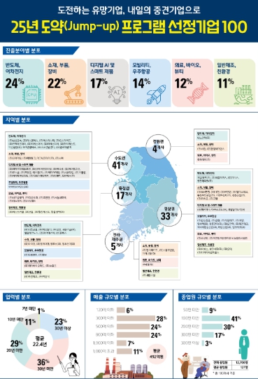 [뉴스서울] 중소벤처기업부는 23일 금년부터 본격적으로 시행하는 ‘도약(Jump-Up) 프로그램’의 지원기업 100개사를 최종 선발했다고 밝혔다.