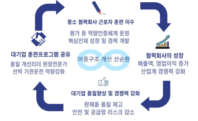 또한, 대기업은 평가, 이수증 등을 포함한 프로그램별 역량인증체계를 개발하고, 동종 산업계에서 통용될 수 있도록 하여 협력사 근로자의 지속적인 경력발전과 성장을 지원하게 된다.