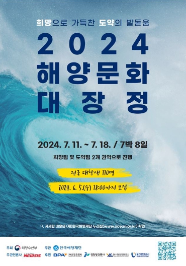 [뉴스서울] 해양수산부와 한국해양재단(이사장 문해남)은 4월 17일부터 6월 5일까지 ‘2024년 해양문화 대장정(이하 대장정)’ 참가자를 모집한다.