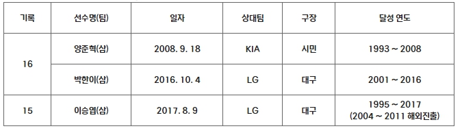 ▲ 연속 시즌 100안타(15시즌 연속 이상) |